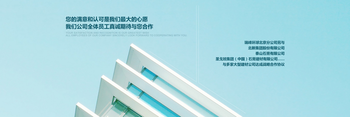 北京市朝陽區(qū)金盞鄉(xiāng)科鷹科技園內,是北京******的建材營銷商之一,專業(yè)銷售各種高檔建筑材料的現代化公司.本公司已與多家大型建材廠家達成合作協議:泰山石膏建材有限公司,北新建材有限公司,濱州綠邦有限公司,河北金秋有限公司,北京金隅砂漿有限公司,歐文斯科寧(中國)投資有限公司,湯姆節(jié)能建材(北京)有限公司等.更與國外泰國工廠生產的:美巖板,清水板,木絲水泥板,木紋木絲板……簽訂了國內經營權;與德國高新企業(yè)超薄石材簽屬超薄巖板國內代理權(超薄巖板,可彎曲石材,厚度1.5~2mm左右)與臺灣合作研發(fā)礦石板(以最好的效果提現礦石的效果).好的工程絕對少不了一個好的建筑材料,瑞峰環(huán)球攜手各大品牌為您的工程保駕護航.